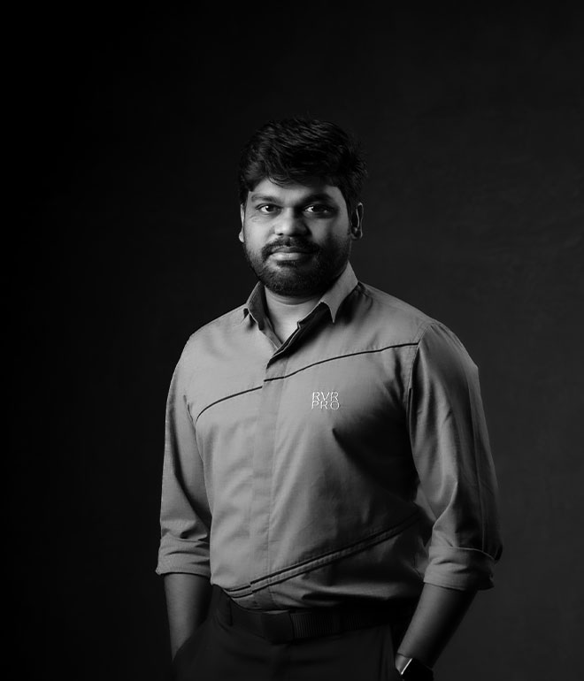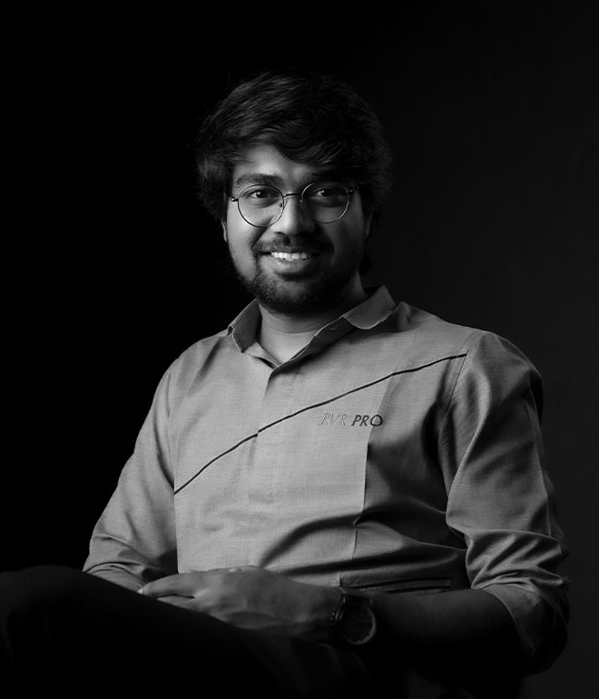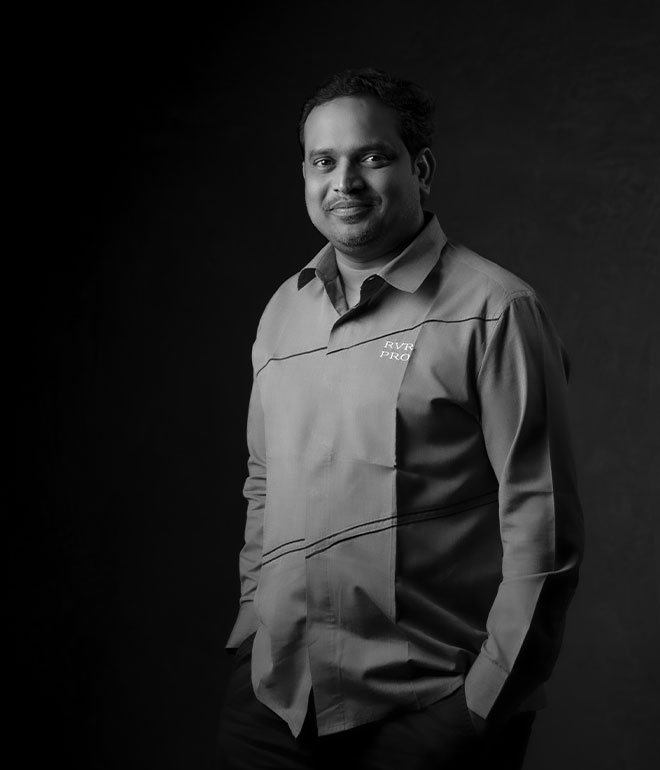 Vijayendra Maganti, Co-founder of RVR PRO, is a multifaceted professional holding a Double Masters degree in Business and Systems Analysis and Design. His unwavering passion for technology and creative imaging has not only laid the foundation for the remarkable success of RVR PRO but has also set a new standard for excellence in the world of wedding photography. Fondly known as the tech guru at RVR PRO, he plays a pivotal role in identifying and implementing the latest technology, designing workflows, and training our PRO team in the adoption of cutting-edge technologies and vital soft skills. Having travelled to over 25 countries worldwide, he possesses a deep-seated passion for exploring uncharted destinations and seeking out new experiences.
